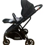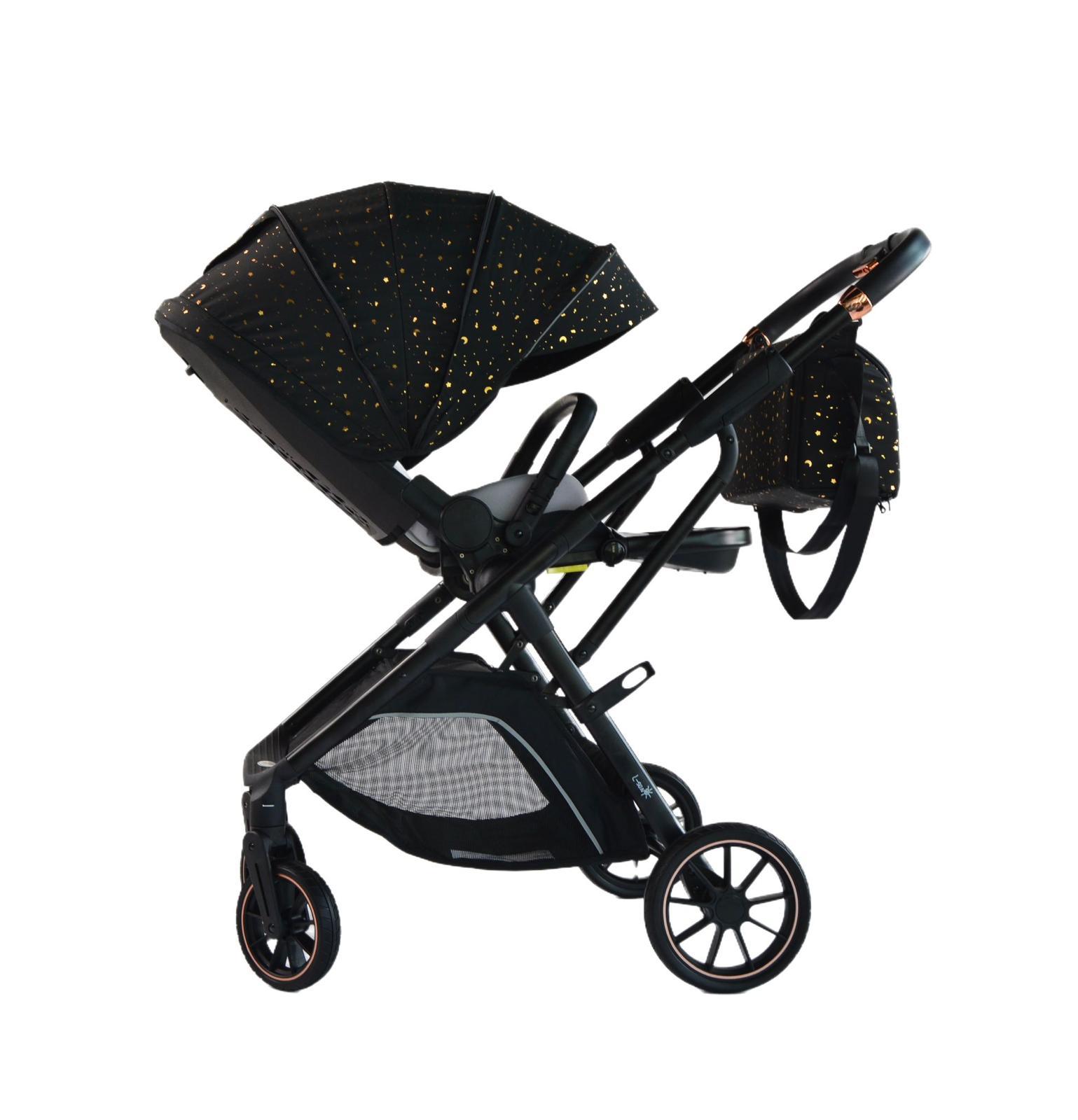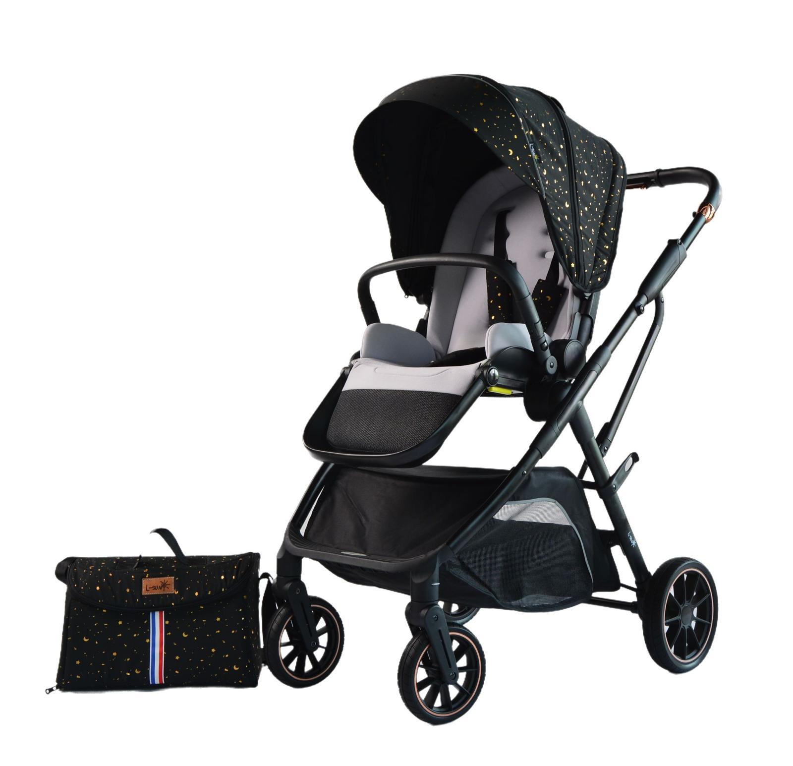 Carucior pliabil C7, L-Sun, 2 in 1, reversibil, geanta scutece, transformabil din landou in parte sport, Negru Stars