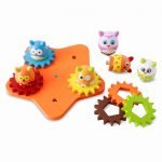 Jucarie din lemn cu 6 oua colorate ce se rotesc atunci cand pui in miscare rotile dintate. Trebuie doar sa rotesti o singura rotita si toate cele 6 oua se vor misca deodata. Le poti asambla dupa culoarea rotitei sau poti face combinatia dorita doar mutand oul acolo unde doresti.